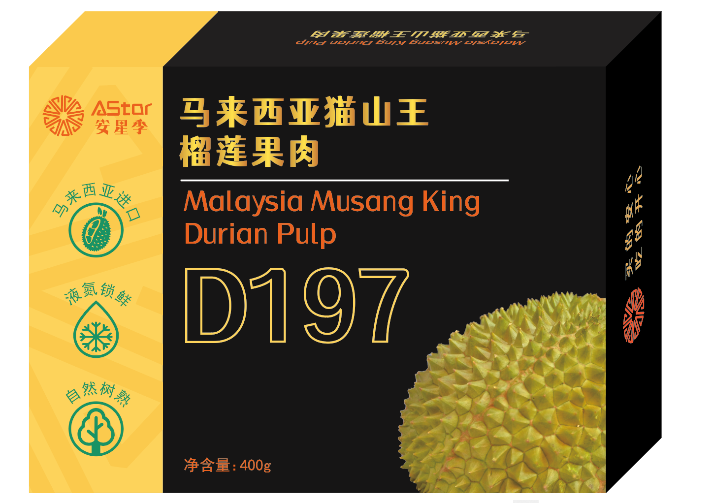 安星季榴莲,产自猫山王黄金产区马来西亚彭亨州劳务县,这里拥有独一无二的物候,充足的光照和适宜的高温让这里的猫山王更加香甜软糯, 果农成熟的育果经验和果园精细化的管理为榴莲的健康成长提供了有力保障,每一颗榴莲都遵循瓜熟蒂落的自然法则,每一颗榴莲都经过严格筛选, 由资深鉴果师进行分级,然后在第一时间进行超低温液氮冷冻锁鲜,真空包装,全程冷链运至国内,为消费者供应安心美味的优质榴莲。